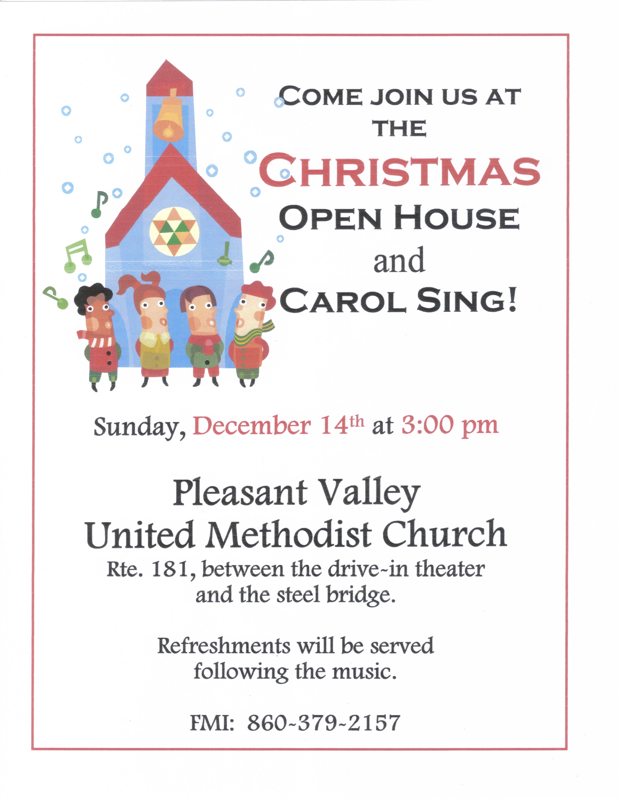 Come join us at Pleasant Valley United Methodist Church on Sunday, December 14th at 3:00 pm, as we once again share in the joyous songs of the season! We’ll have some special guests to get us in the spirit and opportunities to raise our voices in song. Following the music there will be refreshments in our Fellowship Hall. This FREE event is open to the public so come spend some time making a joyful noise!!
