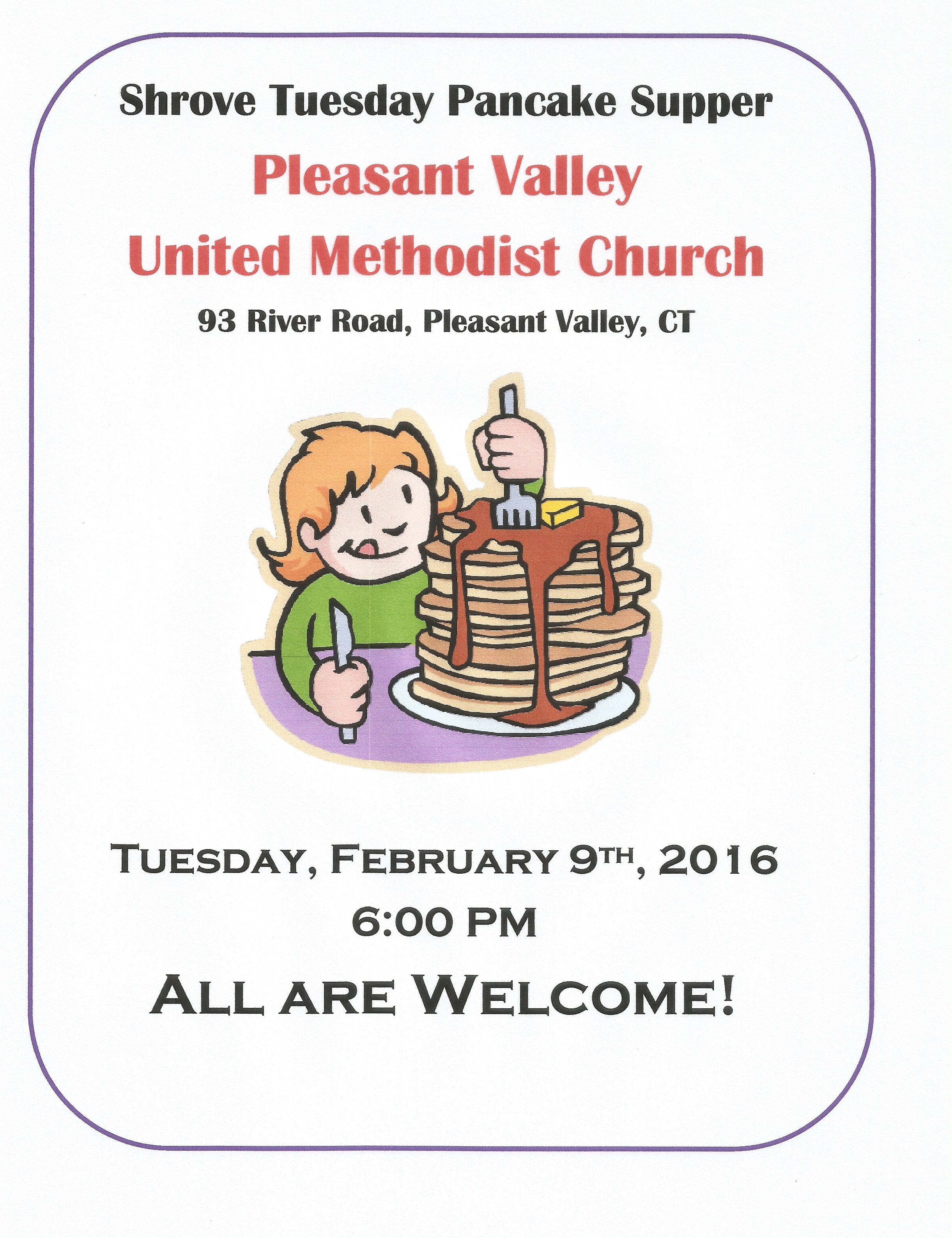 Again this year the men of the church will host the Shrove Tuesday Pancake Supper. All are welcome to come join us at 6PM on February 9th. The event is free although a Good Will Donation basket will be available to help defray the costs of the supper.