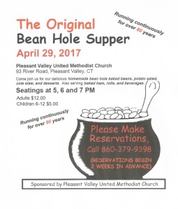 Our first Bean Hole Bean Supper of the year will take place on Saturday, April 29th. This long-standing tradition has been going for over 80 years! Seating is still available. For details about our supper (including the menu), and a glimpse into its history, click on the Bean Hole tab at the top of the page. We’d love to have you join us!
