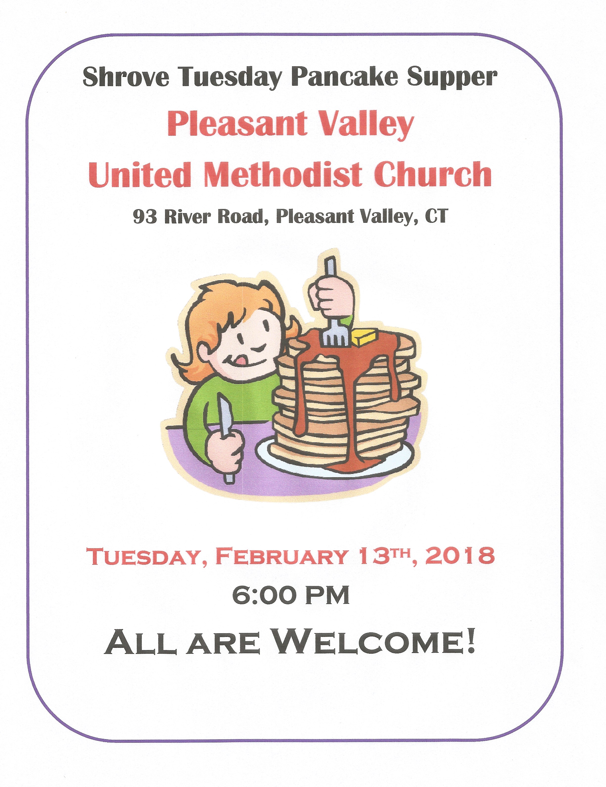 On Shrove Tuesday, we will celebrate with our annual Pancake Supper. The men of the church are the chefs and they provide a delicious selection of “breakfast for dinner” treats, including a variety of pancakes, sausage, and REAL maple syrup! The fun starts at 6:00 pm and is open to anyone who would like to come. Although there is no charge for the meal, a ‘good-will offering’ jar will be available should you wish to help out with expenses. Come join us for a fun event!!