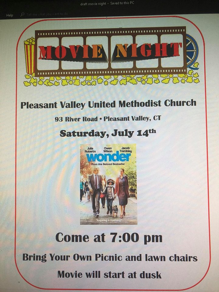 Looking for some FREE FAMILY FUN this Saturday night? Grab your lawn chair or a blanket and even bring a picnic if you’d like. The Pleasant Valley United Methodist church is having their first outdoor movie and we’re showing the movie WONDER! The weather looks perfect for our first ever event so plan to come and join us and watch a great movie.