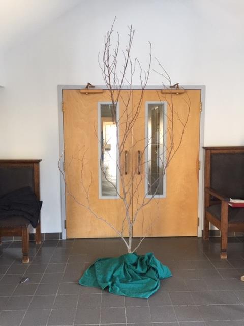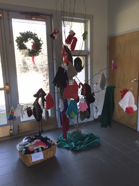 Every year our church sets up a Mitten Tree and asks our congregation to help decorate it with hats, mittens, scarves, and gloves which are then donated to the Winsted Salvation Army to help keep our neighbors warm during this winter season. Here’s the “before” picture…..