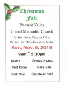 Our annual Christmas Fair, hosted by the United Methodist Women, will take place on Saturday, November 9th from 9am ~ 2:30pm. You’re invited to start your holiday shopping with us! Come look around at all the items to be found including crafts, knit/crochet items, bake sale, book sale, and Christmas Granny’s Attic. While you’re at it, take a break and have a hearty lunch all homemade by the ladies. We hope to see you!